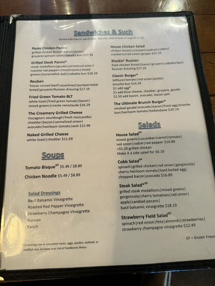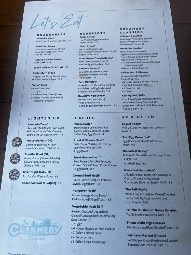 The Creamery Downtown Menu